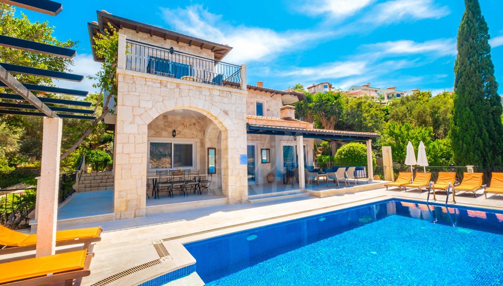 This modern and spacious sea front house comfortably sleeps 11 guests. The large open plan living area comprises comfortable seating area, fully fitted kitchen and dining area. Large glass windows look out onto infinity pool. There is one double bedroom and one twin room upstairs, one twin and one single room downstairs and two double rooms under the pool area. These rooms are not attached to the main house. They have their own private entrances. Direct access to private swimming platforms at sea.